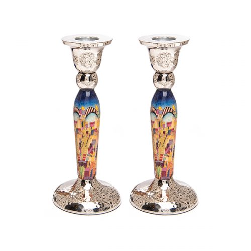 (פמוטי שבת גבוהים עם ירושלים צבעוני ססגוני (גובה 16 ס"מ