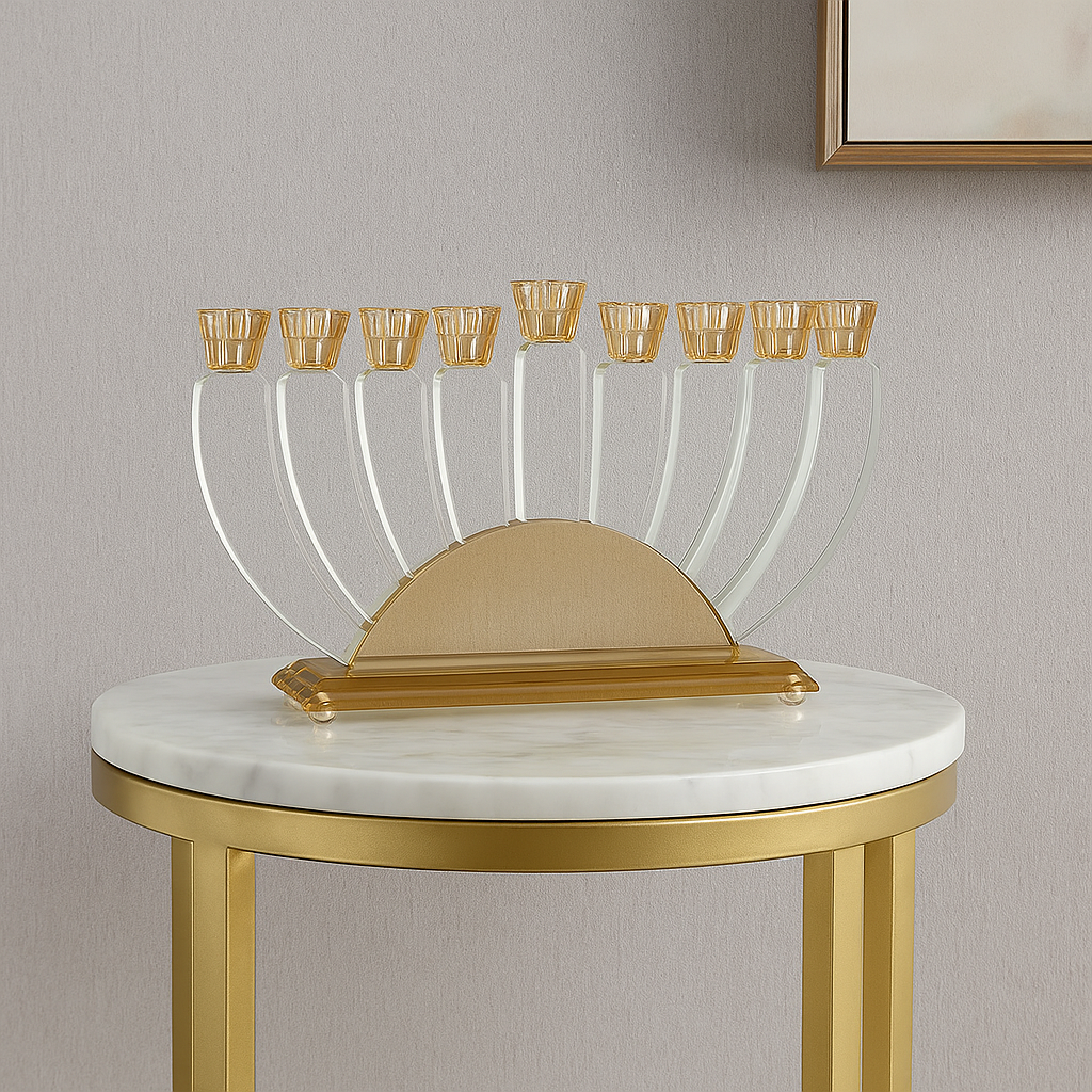 חנוכיית קריסטל יוקרתית בגווני זהב ושקוף