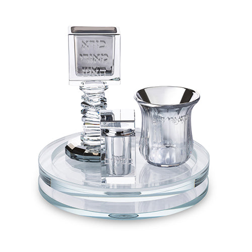 סט הבדלה על מגש מסתובב מקריסטל שקוף